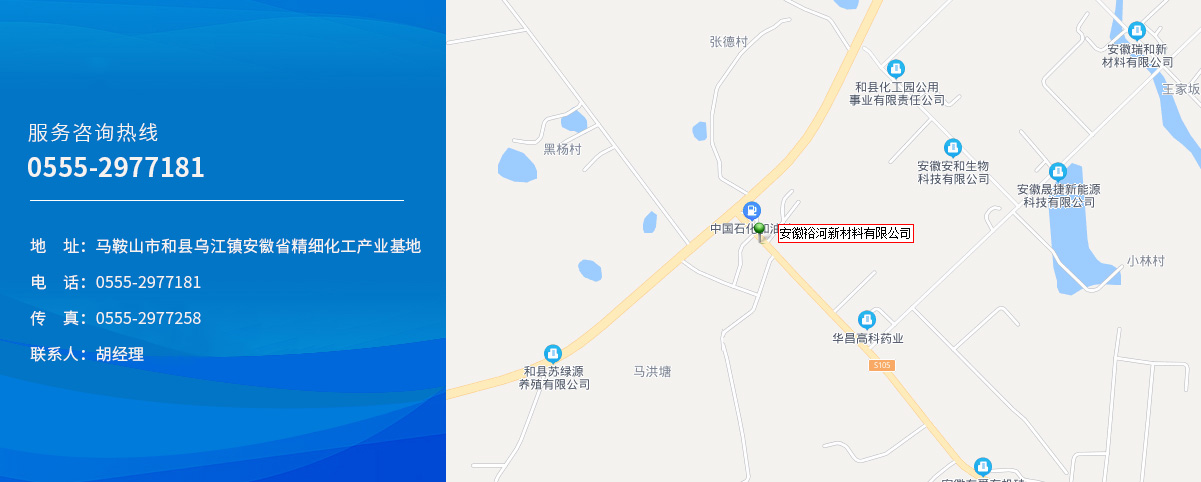 地址:安徽省馬鞍山市和縣烏江鎮(zhèn)安徽省精細(xì)化工產(chǎn)業(yè)基地 電話:0555-2977181 手機(jī):187-0551-7353/胡經(jīng)理